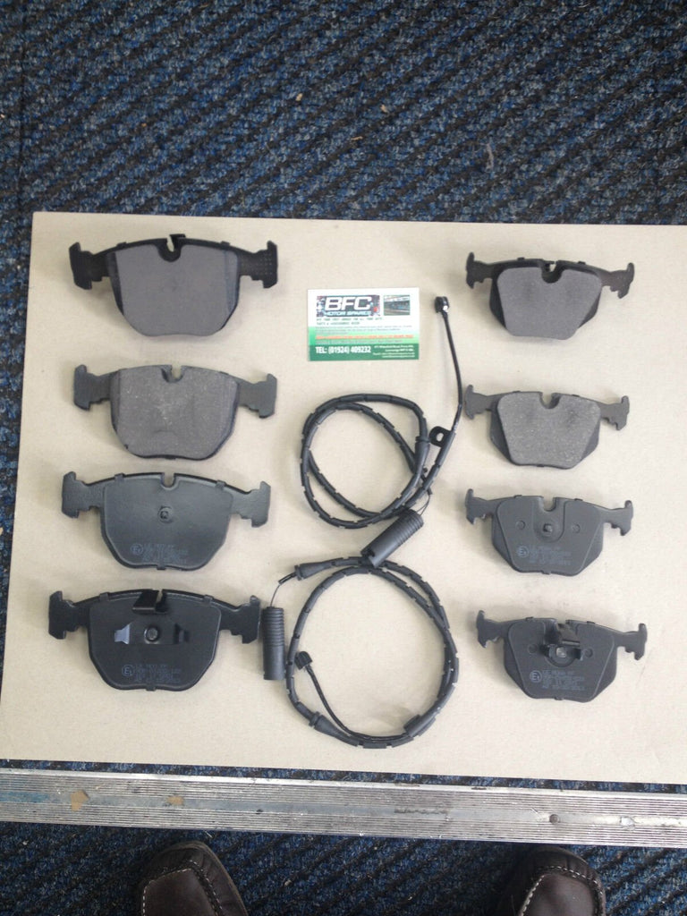 BRAND NEW PART 4X FRONT BRAKE PADS SET 4X REAR BRAKE PADS SET 2X WEAR SENSORS TO FIT THE FOLLOWING BMW X5 E53 3.0 3.0D 4.4 2000-2006 MODELS PADS COMES SENSOR LEADS PLEASE CALL OR EMAIL FOR ANY INFORMATION THE PICTURE USED IS THE EXACT ITEM SHOWN PLEASE NOTE THE FREE DELIVERY IS FOR UK MAINLAND ONLY PLEASE CALL FOR POSTAGE COSTS, OTHER LOCATIONS 01924 409232