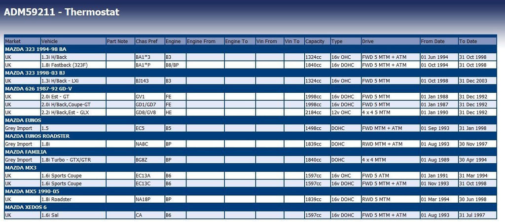 If you are looking for a spare part for Asian or American makes, think of Blue Print!