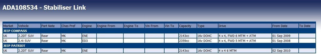 - among others suitable for: Jeep: Compass, Compass 4x4, Patriot 4x4