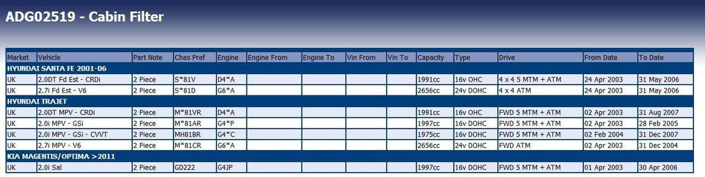 Blue Print ADG02519 Cabin Filter Set, pack of one