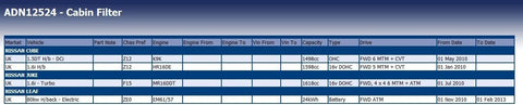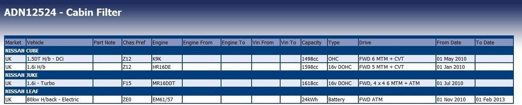 - among others suitable for: Nissan: Cube III, Juke, Juke 4WD, Leaf