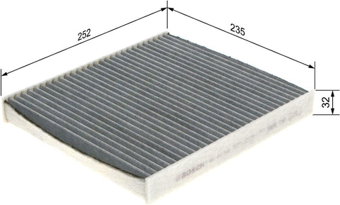 Bosch offers one of the world's largest ranges of spare parts for vehicle repair. The focus thereby is on high quality and a long product life. This helps to keep people mobile all over the world. For more than 130 years, Bosch has pursued the goal of offering intelligent and reliable solutions to make life a little bit easier every day. Cabin Filter Principal feature Action against bad smells Action against allergens Protects from fines particles (up to 99% of PM2 ✓ Neutralizes allergens and bacterias ✓ Protects from smells ✓ ✓ Protects from harmful gaz ✓ ✓ Protects from pollen and fine particles (up to 100% of PM10 ✓ ✓ ✓ Protects the air conditioning system ✓ ✓ ✓ Reduces the mist effect on the windshield ✓ ✓ ✓ The fine particles… Explainations PM10: Fine particles up to 10 micrometers Penetration: bronchi Adapted filters: Standard & Active Carbon PM2,5: Fine particles up to 2,5 micrometers Penetration: Pulmonary alveoli Adapted filters: FILTER+ Bosch recommends to replace the cabin filter every 15 000 kilometers or once a year. FILTER+, a PLUS for: Your HEALTH: Cabin filter against allergens, particles, pollen, gases and bacteria. Your COMFORT: effective against smells. Your SECURITY: The carbon filter reduces the risk of allergic reactions. Your VECHICLE: reduction of deposits in your ventilation system for a reduction of break downs. Your HEALTH: Cabin filter against allergens, particles, pollen, gases and bacteria. Your COMFORT: effective against smells. Your SECURITY: The carbon filter reduces the risk of allergic reactions. Your VECHICLE: reduction of deposits in your ventilation system for a reduction of break downs.