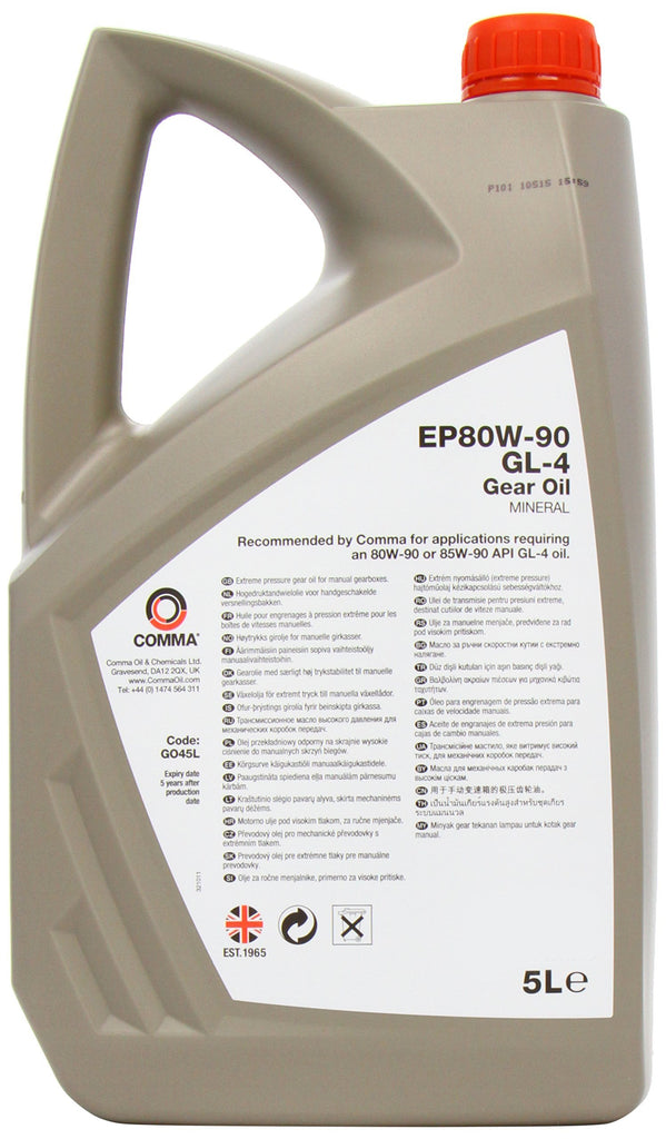 Comma GO45L EP80W90 GL4 Gear Oil, 5 Liter, Grey