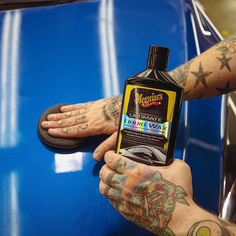 Meguiar's G210516EU Ultimate Liquid Wax 473ml IMPROVED FORMULA Improved formula delivers a glossier finish, increased protection and more water beading action in one easy step KIT Foam applicator & microfibre towel included in the kit EASY TO USE WAX Easy spread on and wipe off application - even in full sun! Meguiar's G210516EU Ultimate Liquid Wax 473ml CLEAR COAT SAFE Safe and effective on all glossy paints and clear coats, and can be applied by hand or dual action variable speed polisher like Meguiar's MT320 Dual Action Polisher RELENTLESS WATER BEADING Hydrophobic Polymer Technology increases surface tension for relentless water beading LONG-LASTING WAX PROTECTION Advanced pure synthetic formula delivers a long-lasting protective barrier on paint while amplifying reflection for incredible depth, shine and gloss