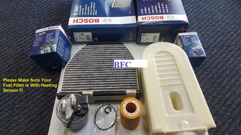BRAND NEW PARTSSERVICE KIT BOSCHPARTS DETAILS1X OIL FILTER1X AIR FILTER1X FUEL FILTER1X CABIN POLLON FILTERPLEASE MAKE SURE YOUR FUEL FILTER IS WITH HEATING SENSOR. IF UNSURE PLEASE EMAIL YOUR REGISTARTION NUMBER THE PICTURE SHOWN IS THE EXACT ITEMS YOU ARE BUYINGPLEASE EMAIL FOR ANY INFORMATION