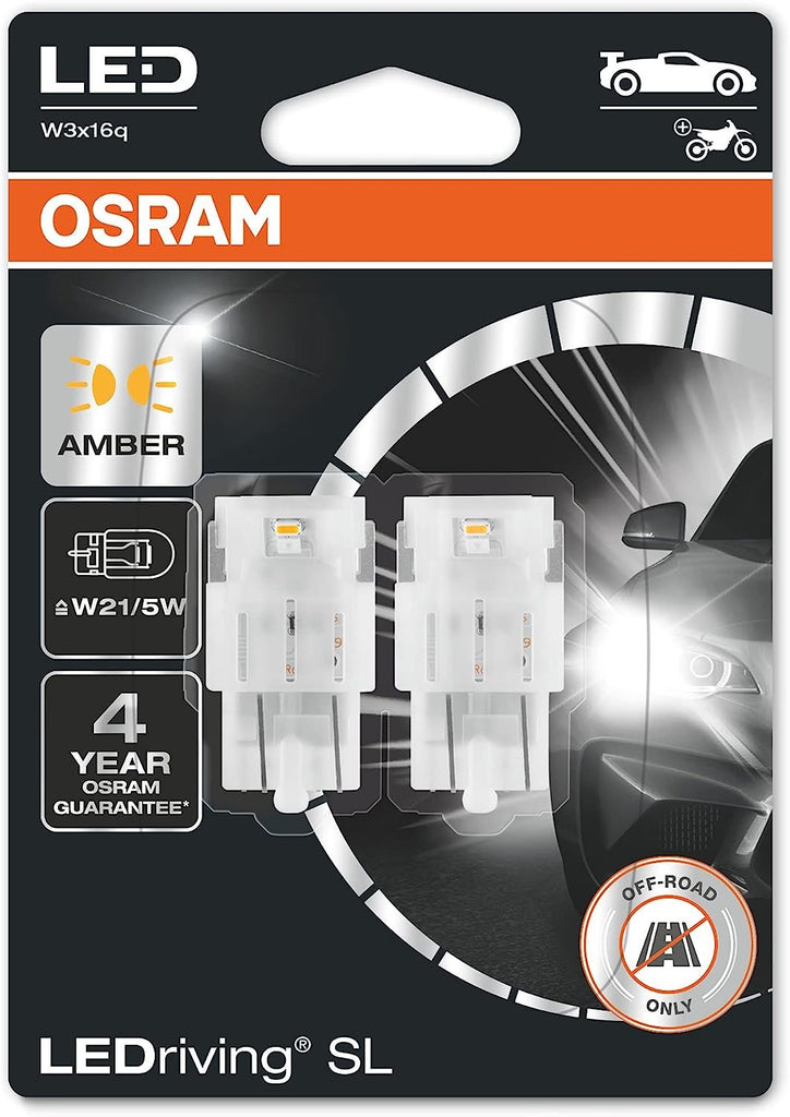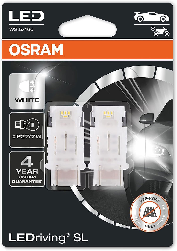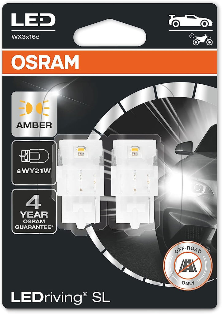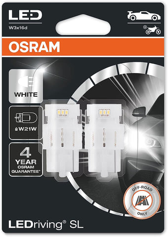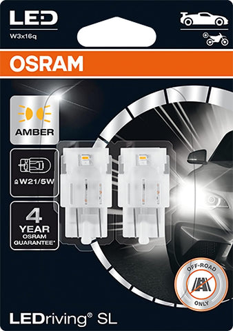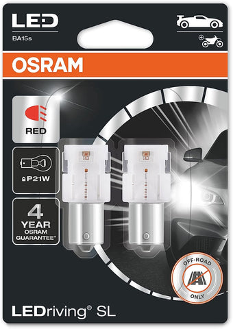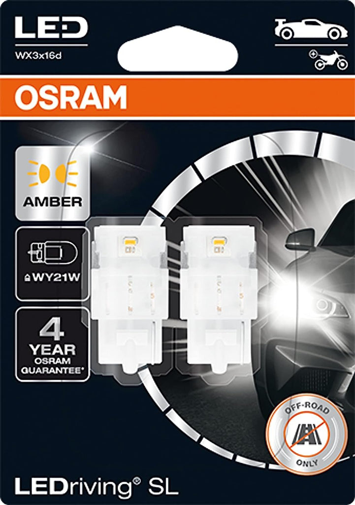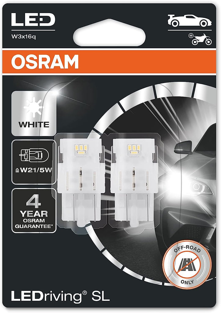 Modern and intense LED light available in Red. The OSRAM LEDriving SL portfolio combines premium quality of the latest LED technology for a competitive price. In addition, OSRAM LED replacement lamps offer a modern and intense LED light with red color temperature. These LED signal lamps replace conventional W16W lamps as easy plug-and-play solution for various vehicle applications. In comparison to standard lamps, LED retrofit lamps have a quicker light up. Meaning faster signals provide more reaction time for drivers behind you. On top OSRAM offers a 4 year guarantee for these LEDriving SL lamps. These products do not have ECE approval and must not be used on public roads in any exterior application. Public roads use leads to cancellation of operating license and loss of insurance coverage. Several countries forbid sale and use of these products. Please contact your local distributor for further information.. Tail light. These products do not have ECE approval and must not be used on public roads in any exterior application. Public roads use leads to cancellation of operating license and loss of insurance coverage. Several countries forbid sale and use of these products. Please contact your local distributor for further information