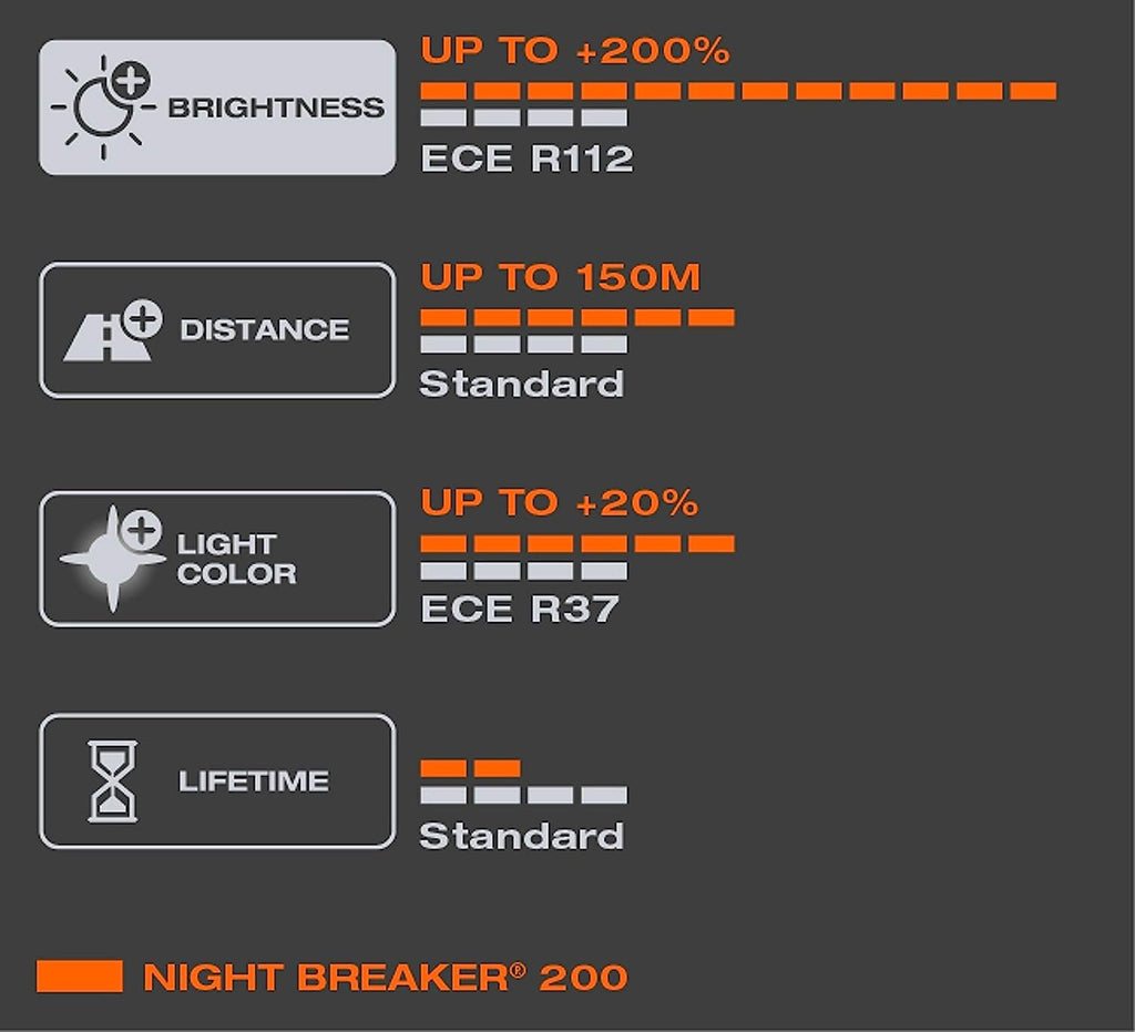 - NIGHT BREAKER 200: The brightest OSRAM light for halogen headlights