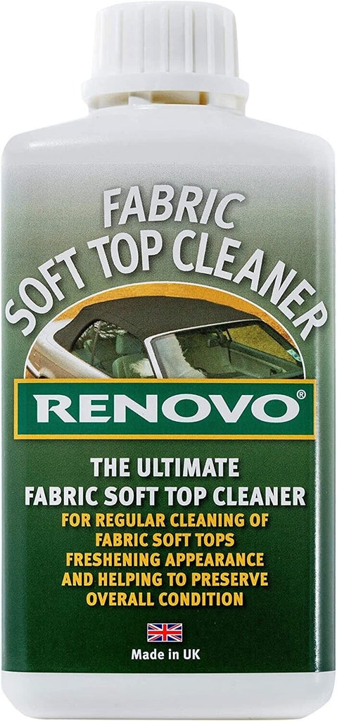 NEW TO RANGEPROFESSIONAL CAR CARE PRODUCT1X Renovo Fabric Soft Top Cleaner 500 ml,Features:Easy to useWater-basedNeutral colourProduct Details:Brand: RenovoModel: RFC1126Product Dimensions: 8 x 5.2 x 17 cm; 500 GramsItem model number: RFC1126Manufacturer part number: RFC1126Item Weight: 500 gSpecific uses for product: Automotive Convertible TopItem form: LiquidBrand: RenovoSurface recommendation: FabricItem volume: 500 MillilitresUnit count: 500.0 millilitreItem Weight: 500 GramsContains liquid contents: Yes