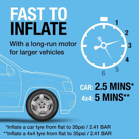 Inflates 4x4 tyre in 6 mins