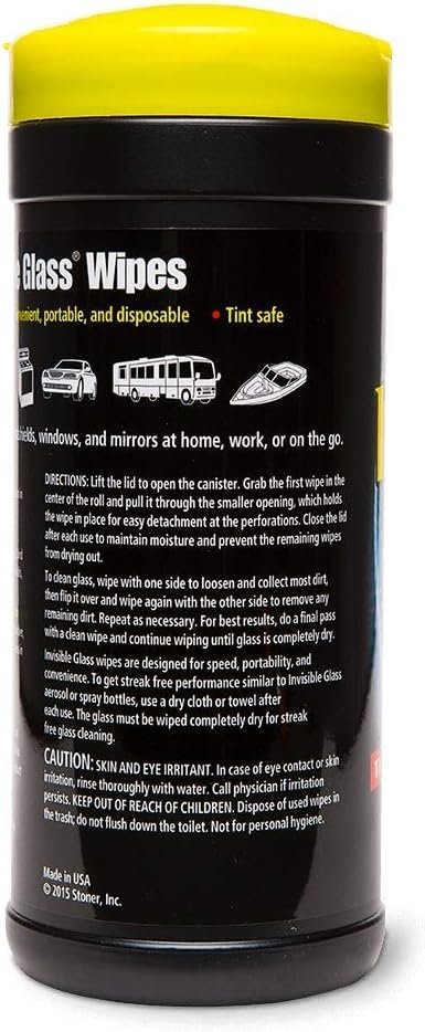 Invisible Glass is so simple to use! Each Invisible Glass Wipe is saturated with highly effective glass cleaner. Gently wipe surface to lift and remove grime. Clean both sides of glass to ensure streak free results. Invisible Glass eliminates residue from smoke, airborne dirt and platicizer film.